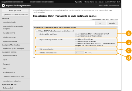 Fare clic su [Gestione periferiche]  [Impostazioni OCSP (Protocollo di stato certificato online)].