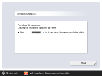 La schermata di avvertenza verrà nuovamente visualizzata quando sta diminuendo il toner di un altro colore se l'opzione <Visualizzaz.messaggio di errore toner residuo> è impostata su <On>.