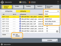 (Statusmonitor/Abbruch) drücken, erscheint der Statusmonitor-Bildschirm, auf dem Sie den Nutzungsverlauf der jeweiligen Funktion wie beispielsweise Kopieren, Drucken, Senden von E-Mail, Senden/Empfangen von Faxen/I-Faxen, Speichern von Dateien in "Erweiterter Platz" usw. überprüfen können. Über diesen Bildschirm können Sie auch den Nutzungsverlauf der jeweiligen Funktion ausdrucken.![]() |