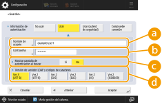 La autenticación se puede hacer de forma más segura codificando el intercambio de datos. Si se emplea esta medida, la versión de LDAP y el código de caracteres se establecen como <Ver.3 (UTF-8)>. Hay que sincronizar el equipo y el servidor LDAP.