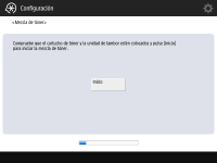 Si aparece la pantalla <Mezcla de tóner>, agite el tóner y realice el ajuste inicial. ![]() Si aparece la pantalla <Opciones de papel>, continúe con el paso 3. ![]() Pulse <Inicio> para mezclar el tóner. Cuando aparezca la pantalla indicando que el proceso ha finalizado, pulse <Aceptar>. | |