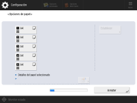 Compruebe que el papel cargado en el origen de papel está bien especificado. ![]() ![]() Si los tamaños del papel son correctos, pulse <Aceptar>. Para obtener información en pantalla e instrucciones sobre cómo cambiar las opciones, consulte Especificar el tamaño y tipo de papel en el depósito/casete de papel. Si no ha iniciado sesión como administrador, continúe con el paso 12. | |