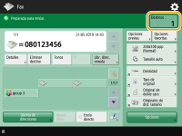 Especifique el destino en la pantalla de funciones básicas de fax. Pantalla de funciones básicas de fax