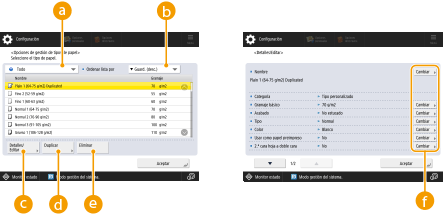 Pulse <Preferencias> <Opciones de papel>  <Opciones de gestión de tipos de papel>.