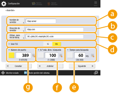 Al introducir una dirección IP, compruebe si el servidor DNS utilizable solo admite búsquedas hacia adelante. Si el servidor DNS solo admite la búsqueda hacia adelante, pulse <No usar> o <Usar> en <Información de autenticación> en el paso 4. Al seleccionar <Usar (autent. de seguridad)>, confirme que el servidor DNS admite la búsqueda inversa.