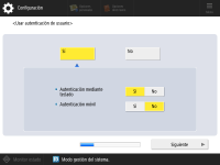 Si están configurados la autenticación de usuario o el ID de departamento.