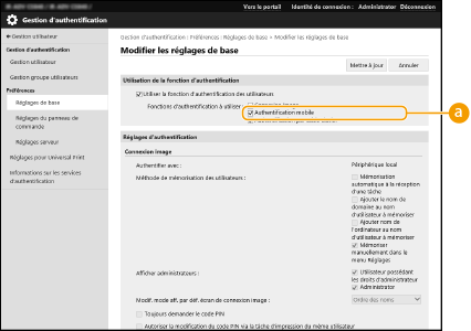 Sélectionnez les méthodes de connexion à utiliser, et spécifiez des réglages détaillés tels que pour les dispositifs d'authentification.