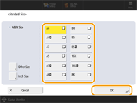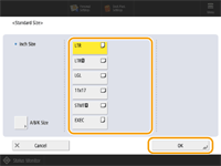 Mesmo quando o papel é carregado corretamente, alguns padrões de tamanho podem não ser detectados corretamente. Nesse caso, pressione <Standard Size> e selecione o tamanho do papel. Tamanhos de papel automaticamente detectáveis