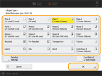 Se o tipo de papel carregado não for exibido, pressione <Detailed Settings> para selecionar em uma lista.