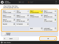 Se o tipo de papel carregado não for exibido, pressione <Detailed Settings> para selecionar em uma lista.