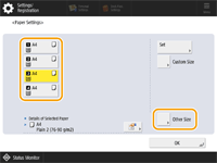 1 | Selecione a gaveta de papel em que o papel está carregado e pressione <Other Size>. |
