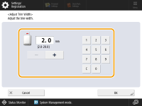 Se o cortador opcional estiver instalado, você poderá cortar as extremidades de livretos. Essa configuração possibilita que você ajuste a largura de corte.