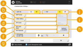 Para enviar diretamente documentos digitalizados via e-mail/I-fax sem precisar de um computador, é necessário definir configurações de comunicação, como um servidor de e-mail, métodos de autenticação, etc. De modo geral, um servidor SMTP é usado para envio, e outro servidor SMTP ou um servidor POP3 é usado para recebimento. Você pode definir códigos e outros parâmetros. Para detalhes sobre as configurações necessárias, contate seu provedor de internet ou administradores de rede.