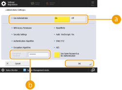 Se o "Administrador" estiver desabilitado, você não poderá configurar <Administrator Settings> (a configuração de <Use Administrator> é fixada como <Off>).