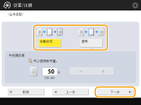 如果进行双面复印时要在背面合并表格图像,请配置<反面>。要合并与正面相同的表格图像,按<与正面相同>。要合并与正面不同的表格图像,按<设置>,然后继续执行步骤5。