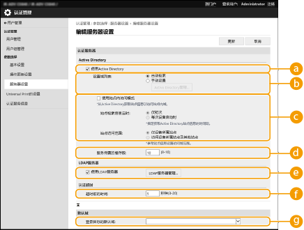 1 | 选择[使用LDAP服务器]复选框,然后单击[LDAP服务器管理...] [确定]。 |