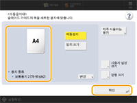 1 | 용지 카세트의 용지 크기 설정이 용지 카세트에 넣을 용지 크기와 반드시 일치하도록 합니다. |