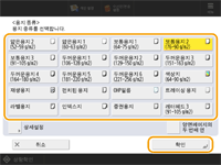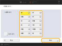 2 | 용지 크기를 선택하고 <확인>를 누릅니다. |