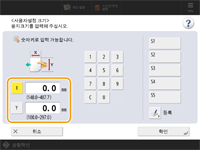 <X> 또는 <Y>를 눌러서 숫자 키를 사용하여 양쪽의 길이를 입력합니다. ![]() 자주 사용하는 용지 크기를 <S1>부터 <S5>까지 버튼에 등록하면 버튼만 눌러서 불러낼 수 있습니다. 프리 사이즈 용지 등록(사용자 정의 크기 용지) | |