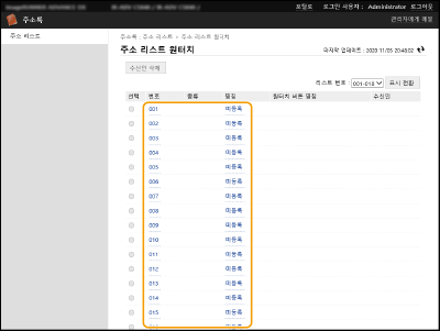 [관리자용 주소 리스트]는 관리자 또는 장치 관리자 권한으로 로그인한 사용자만 사용할 수 있습니다.