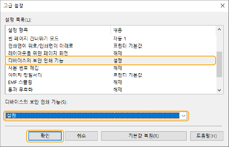 [디바이스 설정] 탭에 있는 [디바이스의 안전한 인쇄 기능] 확인란을 선택합니다.