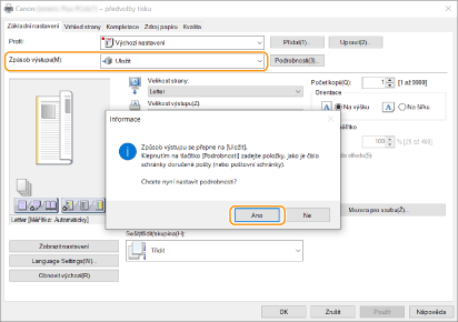 Vyberte stroj a klikněte na [Předvolby] nebo [Vlastnosti].