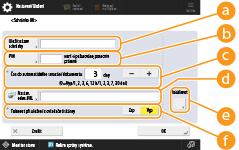 <Čas do automatického smazání dokumentu>Stisknutím <->/<+> změňte časový úsek, po jehož uplynutí se uložené soubory automaticky odstraní. Nastavíte-li jej na „0“, soubory nebudou odstraněny.