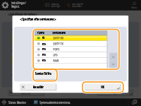 3 | Angiv den port, IPSec skal anvendes på. Tryk på <Sortér efter portnummer> for at bruge portnumre ved angivelse af de porte, IPSec skal anvendes på. Vælg <Alle porte> for at anvende IPSec på alle portnumre. For at anvende IPSec på et bestemt portnummer skal du trykke på <Enkelt port> og indtaste portnummeret. Efter angivelse af portene skal du trykke på <OK>. Angiv porten på denne maskine i <Lokal port>, og angiv porten for kommunikationspartneren i <Fjernport>. ![]() Tryk på <Specificer efter servicenavn> for at bruge tjenestenavne ved angivelse af de porte, IPSec skal anvendes på. Vælg tjenesten på listen, tryk på <Service Til/Fra> for at indstille den til <Til>, og tryk på <OK>. ![]() | ||||||||||||||