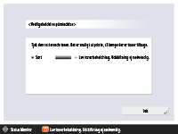 Følgende advarselsskærmbillede vises. ![]() Hvis du trykker på <Luk> på advarselsskærmbilledet for at lukke skærmen, kan du udføre normale betjeninger. Bemærk dog, at advarselsskærmbilledet vises, hver gang maskinen vender tilbage fra dvalestatussen, eller når hovedstrømmen sluttes til. Hvis du allerede har forberedt en ny tonerpatron osv. og meddelelsen bliver unødvendigt, skal du udføre handlingen <Slet meddelelse om resterende toner>. Den meddelelse, der angiver statussen, forbliver nederst på skærmbilledet, uanset denne indstilling. |
