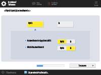 Jos <Käytä lisäluovutustasoa> -näyttö tulee näkyviin, määritä aiotko käyttää muita luovutustasoja. ![]() Jos <Päivämäärä/Aika-asetukset> -näyttö tulee näkyviin, jatka vaiheeseen 7. ![]() Ota luovutustaso käyttöön valitsemalla <Kyllä> tai poista se käytöstä valitsemalla <Ei> ja valitse <OK>. Näytettävät tiedot määräytyvät asennettujen lisävarusteiden mukaan. | |