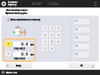 Naciśnij <X> albo <Y>, aby wprowadzić długość danego boku za pomocą klawiszy numerycznych. ![]() Jeżeli przypiszesz często używany format papieru do przycisków od <S1> do <S5>, możesz z nich korzystać na zasadzie jednoprzyciskowej. Rejestrowanie papieru o formacie dowolnym (Niestandardowy format papieru) | |