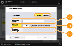 Prima isto para especificar a informação de autenticação quando utilizar a função de autenticação do servidor proxy. Prima <Ligado> no ecrã visualizado, introduza o nome do utilizador e a palavra passe para autenticação proxy, e prima <OK>.
