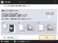 すでにテストページをプリントしている場合は、<テストページをプリントしない>を押して選択した状態にしてから、<次へ>を押します。
