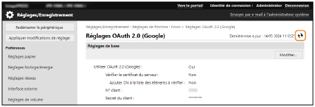 [Réglages OAuth 2.0 (Google)] s'affiche à nouveau.