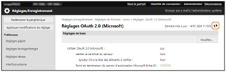 L'écran [Réglages OAuth 2.0 (Microsoft)] s'affiche de nouveau.