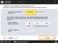 Se è necessario regolare la posizione dell'immagine con maggiore precisione dopo averla regolata utilizzando la pagina di prova, selezionare <Non utilizzare scanner> <Regolaz. posizione immagine> ed effettuare le regolazioni necessarie per le singole voci di impostazione della regolazione. |