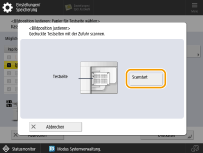 Reinigen Sie den Scanbereich auf dem Vorlagenglas und im Einzug, bevor Sie Anpassungen vornehmen. Drucken Sie die Testseite unter den folgenden Bedingungen aus. Möglicherweise können keine präzisen Ergebnisse bei der Anpassung erzielt werden, wenn die Testseite nicht korrekt ausgedruckt wird. Papierformat: 100 mm x 148 mm bis 297 mm x 1.000 mm Oberfläche: Unbeschichtet, Recycling, Baumwolle Typ: Normal, Briefbogen Flächengewicht: 52 bis 220 g/m2 Wenn Sie die Testseite auf Papier eines anderen Formats als dem angegebenen Papierformat ausdrucken, wird die Bildposition möglicherweise nicht richtig eingestellt. Wenn eine Seite der Testseite nicht richtig zugeschnitten oder geknickt ist, oder wenn das Bild nicht korrekt auf die Testseite gedruckt wurde, erscheint möglicherweise die Meldung <Testseite richtig auf das Vorlagenglas legen.> während des Scanvorgangs. Bei einigen Papiersorten wird die Anpassung möglicherweise nicht korrekt durchgeführt, so z. B. bei strukturiertem Papier mit rauer Oberfläche oder farbigem Papier. Wenn die Anpassung bei der Auswahl von <Scanner verwenden> nicht korrekt durchgeführt wird, wählen Sie stattdessen die Option <Scanner nicht verwenden>. In den folgenden Fällen kann die Testseite nicht richtig gescannt werden und die Anpassung kann nicht durchgeführt werden: Die Testseite wird beim Scannen schief eingezogen Das Papierformat ist z. B. EXEC oder G-LGL, die beim Scannen schief eingezogen werden können, weil die Papierführung nicht fixiert werden kann. |