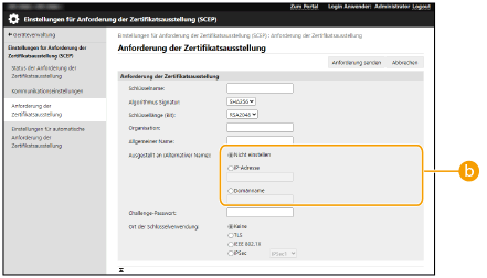 Bei der Beantragung der Ausstellung von Zertifikaten ist es jetzt möglich, [Ausgestellt an (Alternativer Name)] festzulegen.