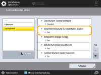 Sie können jetzt die Zeitdauer festlegen, in der das Gerät die zweite und nachfolgende Tasteneingaben nicht akzeptiert, wenn eine Taste auf der Bildschirmtastatur versehentlich wiederholt gedrückt wird. Konfigurieren Sie diese Einstellung in Fällen, in denen Sie ein einzelnes Zeichen eingeben möchten, aber dasselbe Zeichen wiederholt eingegeben wird.