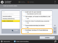 <Einstellungen Sperrdauer für Passwortänderung> | <Ein>, <Aus> Bei Einstellung von <Ein>: <Sperrdauer>: 1 bis 179 | Nein | Nein | Ja | Nein | C | Grundinformationen Einstellungen/Speicherung |