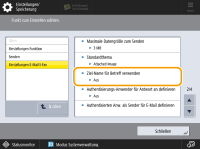<Ziel-Name für Betreff verwenden> | <Ein>, <Aus> | Ja | Nein | Ja | Nein | C | Grundinformationen Einstellungen/Speicherung |
