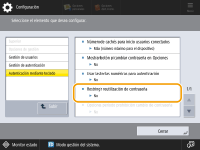 <Restringir reutilización de contraseña> | <Sí>, <No> Si se selecciona <Sí>: <Número de últimas contraseñas prohibidas>: de 1 a 24 | No | No | Sí | No | C | Información básica de configuración |