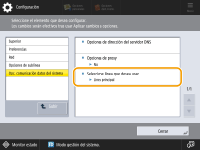 "Lista de opciones" en la "Guía de usuario."Elemento | Descripción de opción | DeviceAdmin | NetworkAdmin | Puede configurarse en la IU remota | Distribución de información del dispositivo disponible | Función Importar todo | Nombre del elemento al exportar con la IU remota. |
