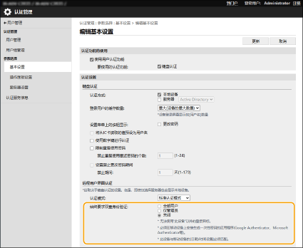 现在可以要求注册的用户在登录用户界面时执行双因素认证。选中此复选框以要求进行双因素认证。
