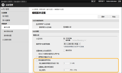 现在可以设置用户无法更改其密码的期间。选中[设置禁止更改密码期间]复选框,还可以指定禁止期间。