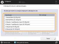 1 | Seleccioneu un tipus de paper per al qual restaureu la configuració inicial de calibratge del color. |