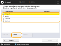 Seleccioneu un dels perfils desats existents i premeu <Duplicar>. Després, introduïu el nom del perfil i premeu <Bé>.