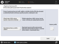 <Registrovat barevný profil> | <Přiřadit hodn. RGB k výstup. barvám v barevném schématu>, <Reprodukovat barvy z jiného zařízení>, <Seznam profilů> | Ano | Ne | Ne | Ne | A | Settings/Registration Basic Information |