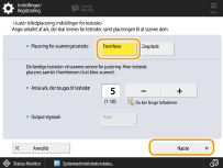 Hvis du har brug for at tilpasse billedplaceringen mere præcist, når du har justeret med testsiden, skal du vælge <Brug ikke scanner> <Justér billedplacering> og foretage de nødvendige justeringer for individuelle indstillingspunkter for justering. |