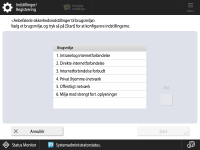 <Anbefalede sikkerhedsindstillinger for brugsmiljø> | <1. Intranetog internetforbindelse> <2. Direkte internetforbindelse> <3. Internetforbindelse forbudt> <4. Privat (hjemme-)netværk> <5. Offentligt netværk> <6. Miljø med strengt fort. oplysninger> <Slet> | Ja | Ja | Ja | Nej | Nej | Settings/Registration Basic Information |